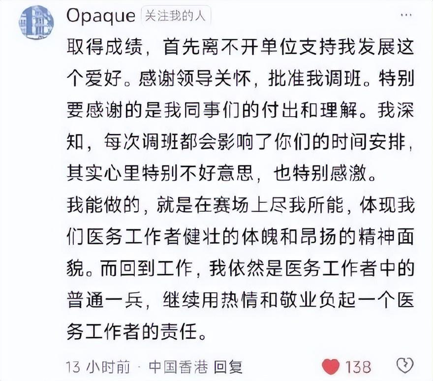 然而,她却趁着拿到冠军之后的采访,把这件“私事”,曝光在大众视野中,使之成为了“公共事件”。